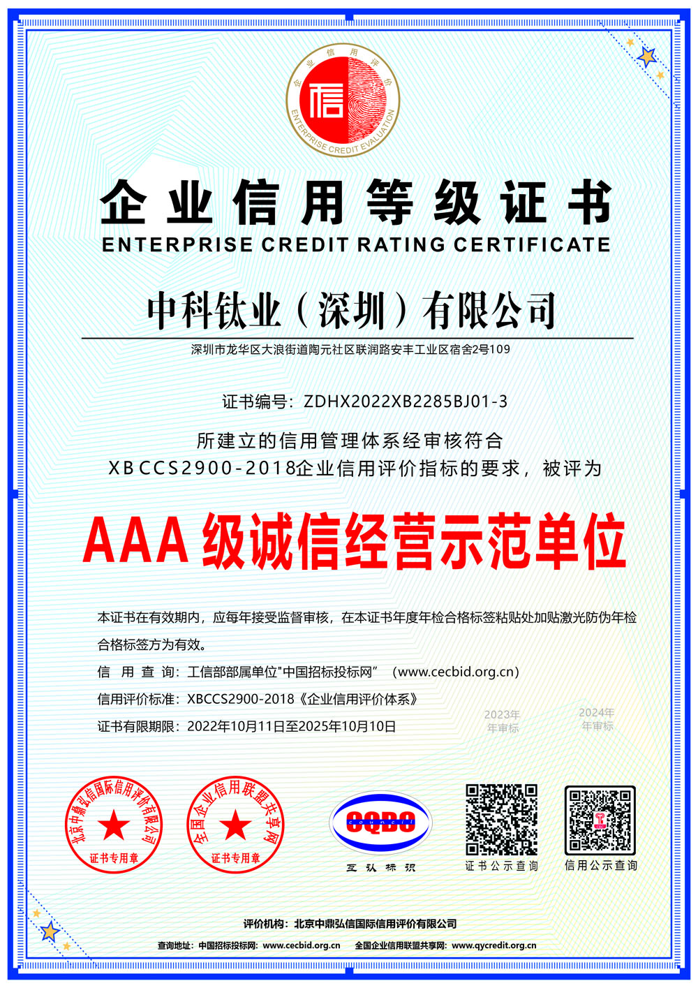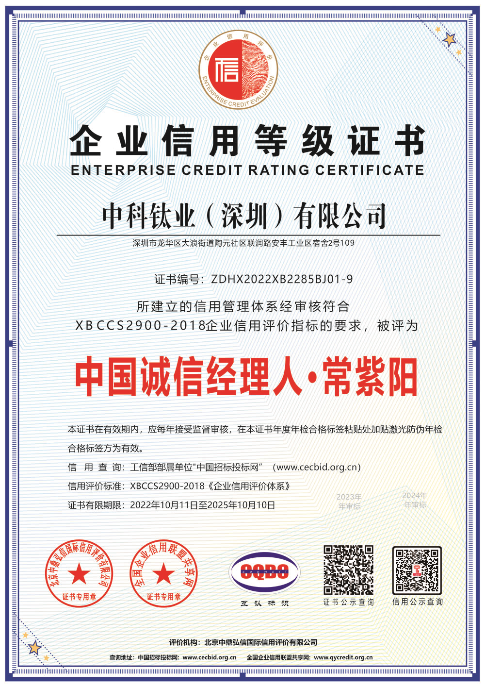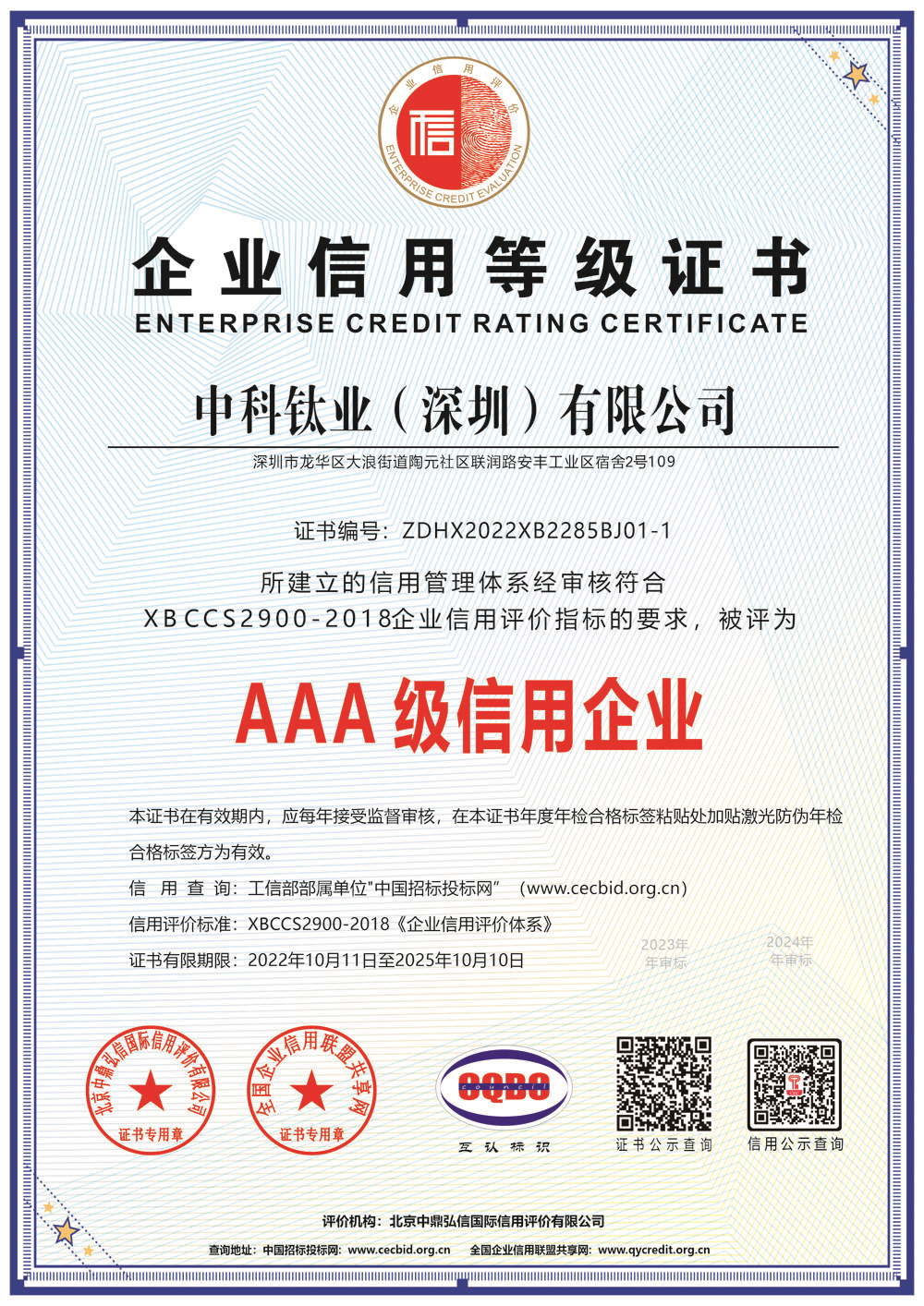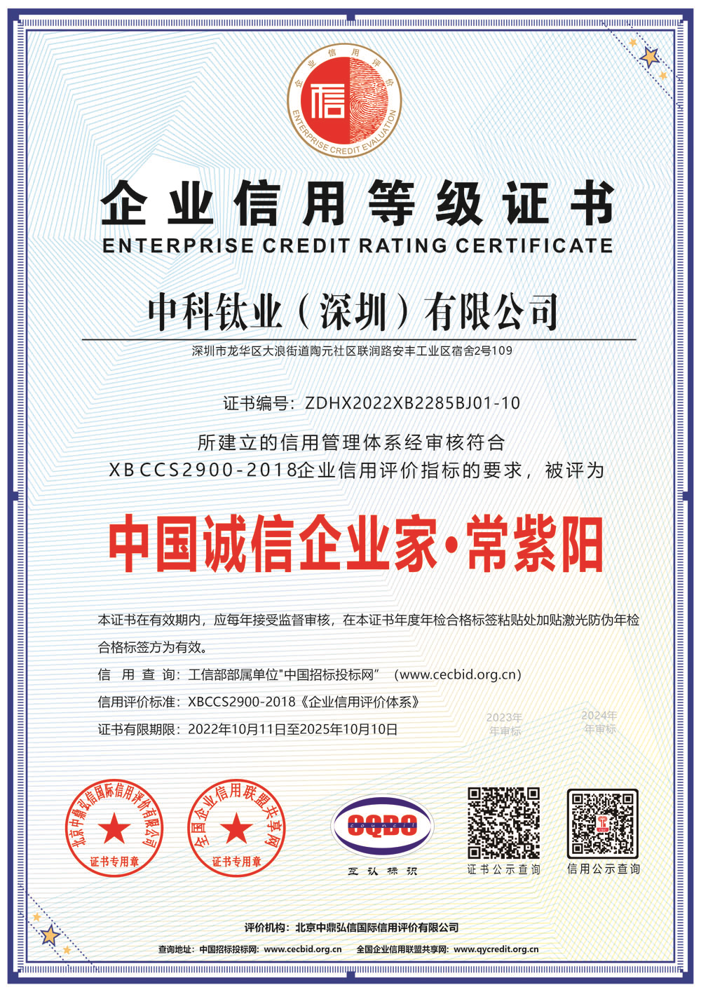努力使中科鈦業(yè)成為全球鈦制品行業(yè)的卓越品牌,成為受人尊敬的鈦產(chǎn)品制造企業(yè)